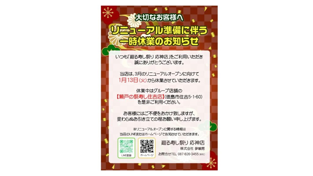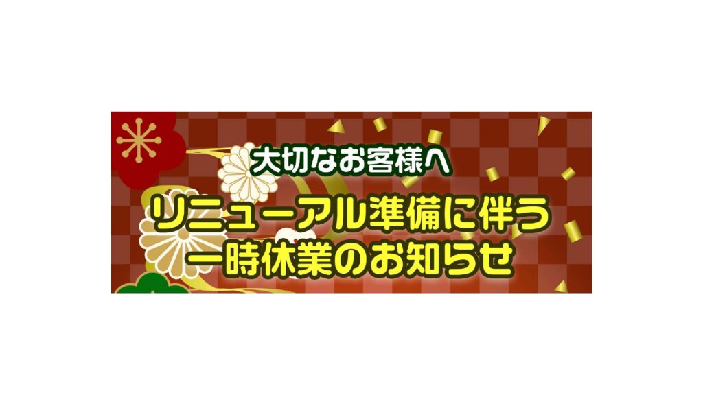 【応神店】リニューアル準備に伴う一時休業のお知らせ