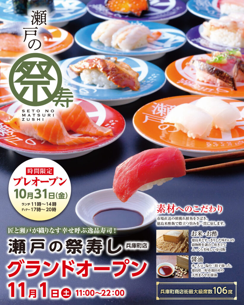 瀬戸の祭寿し兵庫町店 11/1(土) 11:00【グランドオープン】